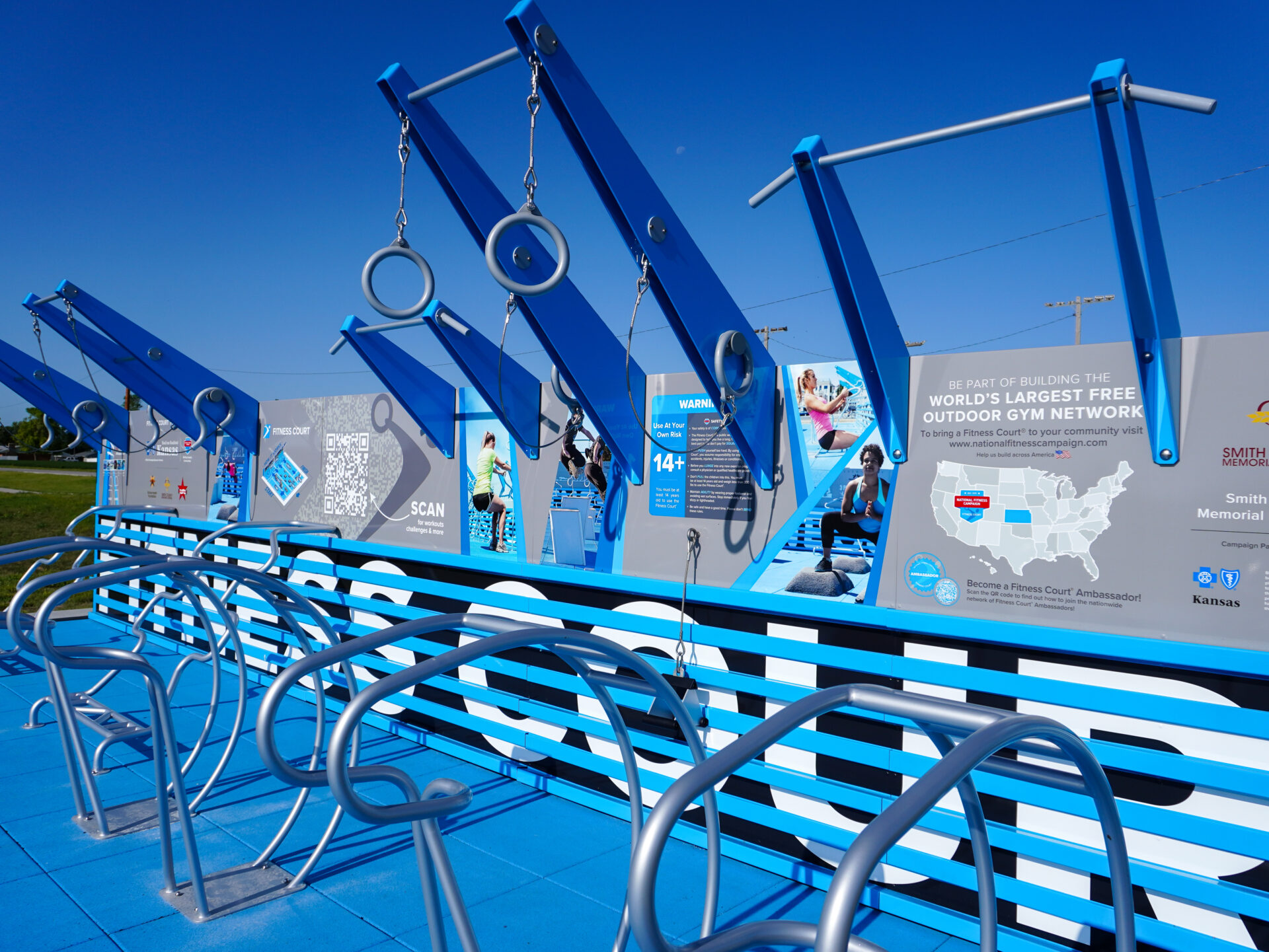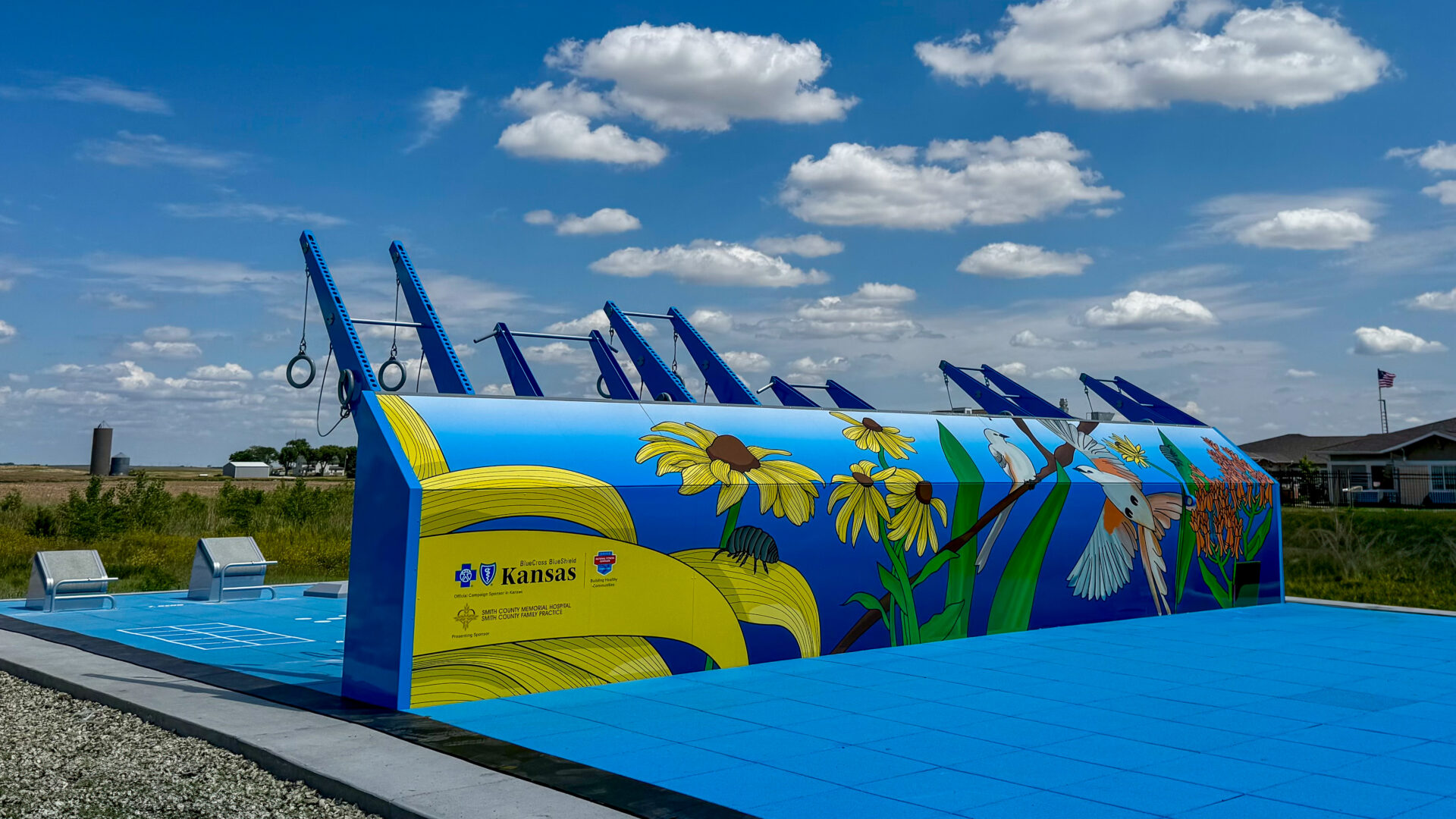 The SCMH Fitness Court Studio is free to use 24/7 and is located at 921 East Highway 36 in Smith Center, Kansas (South of SCMH and across from Smith Center Jr/Sr High School)