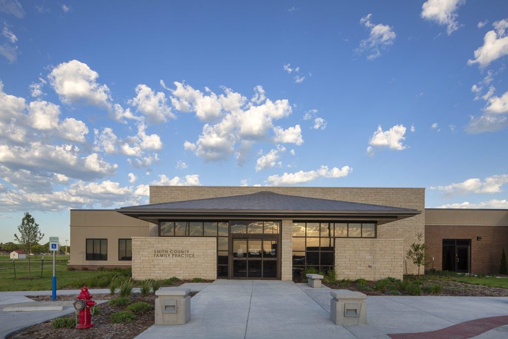 Construction on the Highway 36 hospital building began on Feb. 23, 2017. Hutton Construction built this 62,792 sq. ft. hospital, designed by Health Facilities Group (HFG), on a 40-acre lot between the Smith Center Jr/Sr High School and Jones Machinery. HFG was also involved in designing a new senior living facility, SunPorch of Smith County, which took over the hospital’s long-term care unit in 2017. The group constructed a new senior living campus about a quarter-mile from SCMH. The SunPorch facility opened in 2019 and includes three buildings: two provide long-term care services and one is home to 10 assisted living apartments.