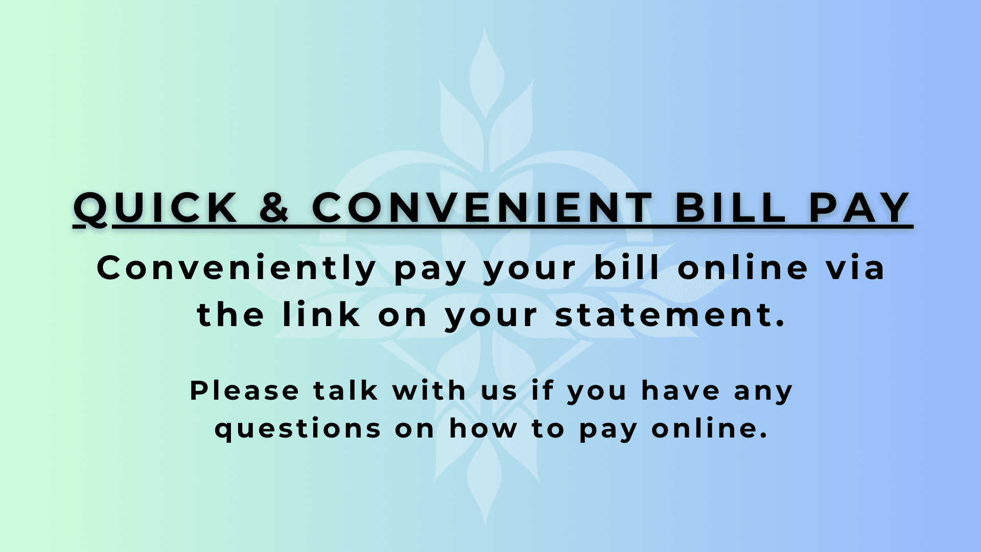 Quick and convenient bill pay is available online via the link on your statement. Please talk with us if you have any questions on how to pay online. Thank you for choosing Smith County Family Practice and Smith County Memorial Hospital.