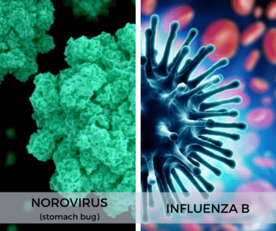 If you are infected with influenza or norovirus, help prevent spreading the virus by avoiding close contact with others (stay home!), cover your mouth and nose when you cough or sneeze, clean your hands often, avoid touching your eyes, nose or mouth, and practice other healthy habits staying active, eating right and getting enough sleep.
